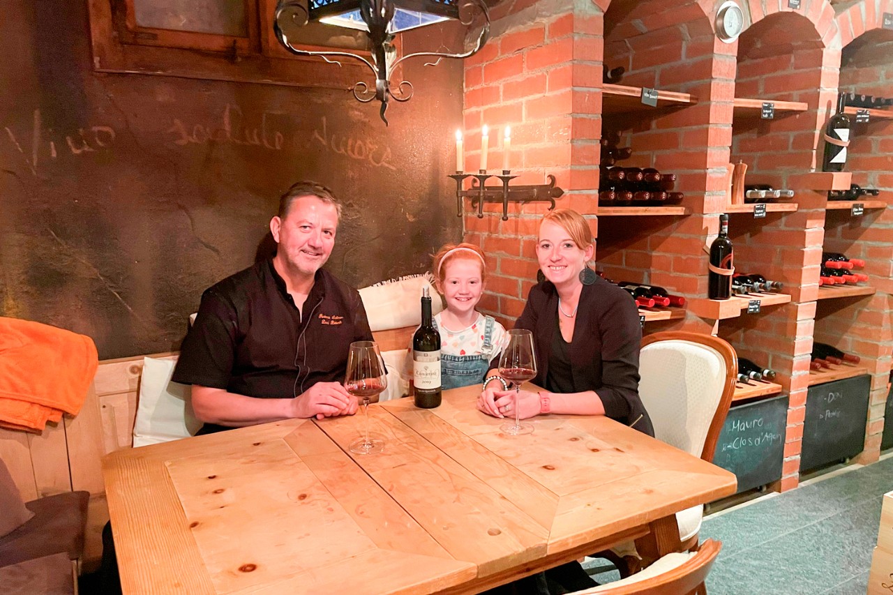Andrea Bartuca, représentant commercial chez Weibel Weine, a récemment rendu visite au Restaurant Salmen à Olten. Il a savouré l’ «Entrecôte avec sauce béarnaise, gratin de pommes de terre et légumes» accompagnée d'un verre de Camartina Toscana Rosso IGT de Querciabella, tout en discutant avec Daniel Bitterli et Vanessa Schneider (sous les yeux vigilants de la petite Lya):