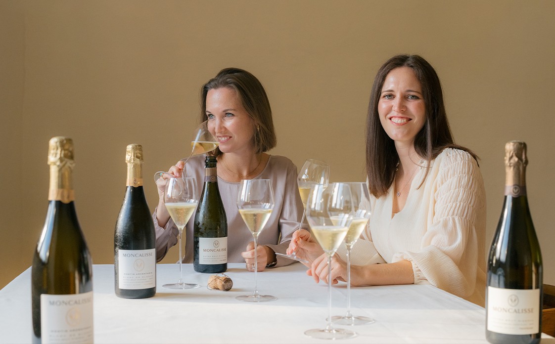 Moncalisse ist ein junges, ambitioniertes Weingut aus dem Trentino, gegründet 2016 von den Schwestern Julia und Karoline Walch, Nachkommen der renommierten Winzerfamilie Elena Walch. Das Weingut liegt am Fusse des Monte Calisio nördlich von Trient, wo auf rund 600 Metern Höhe ideale Bedingungen für elegante und spannungsgeladene Trentodoc-Schaumweine herrschen. Die 12 Hektar Weinberge sind konsequent auf die traditionellen Rebsorten des Metodo Classico ausgerichtet. Die Höhenlage, kargen mineralischen Böden und starken Tag-/Nacht-Temperaturunterschiede sorgen für eine ausgeprägte Frische, Finesse und aromatische Klarheit in den Grundweinen. Nachhaltigkeit, naturnahe Bewirtschaftung und eine sorgfältige Laub- und Traubenarbeit gehören zur Philosophie von Moncalisse. Im Keller folgt man strikt der traditionellen Flaschengärung, kombiniert mit moderner Präzision und langer Hefelagerung. Die Weine von Moncalisse zeichnen sich durch eine straffe Struktur, präzise Perlage und markante Mineralität aus. Ziel des jungen Hauses ist es, die einzigartigen Eigenschaften des Monte-Calisio-Terroirs im Glas erlebbar zu machen und Schaumweine mit Eleganz, Tiefgang und Lagerpotenzial zu schaffen. Mit ihrer klaren Stilistik und ihrem Fokus auf höchste Qualität positioniert sich Moncalisse als eine der spannendsten neuen Stimmen im Trentodoc.